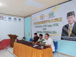 Sosialisasi ini turut menghadirkan Ir. H. Syahrasaddin, M.Si, Tenaga Ahli Utama MPR/DPR RI, sebagai narasumber, serta dimoderatori secara interaktif oleh Drs. M. Rum, MM, Tenaga Ahli MPR/DPR RI.