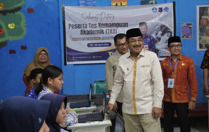 Bupati Tanjung Jabung Barat, Drs. H. Anwar Sadat, M.Ag., turun langsung melakukan peninjauan pada Kamis (09/04/2026) di sejumlah sekolah, di antaranya SMPN 1, SMPN 3, dan SMPN 4 Tanjab Barat. Kunjungan ini dilakukan untuk memastikan pelaksanaan ujian berbasis laboratorium komputer berjalan lancar dan sesuai prosedur.